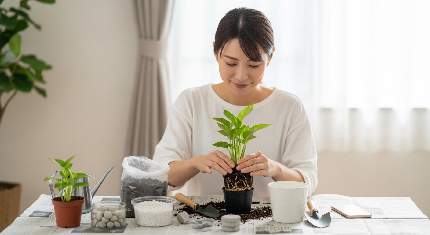 初めての観葉植物の植え替え、何から手をつけていいか不安ですよね。「100均の土で本当に大丈夫?」「失敗して大切な植物を枯らしてしまったらどうしよう…」その気持ち、とてもよく分かります。私も最初は不安で、大切なポトスをダメにしちゃった経験があるんです。