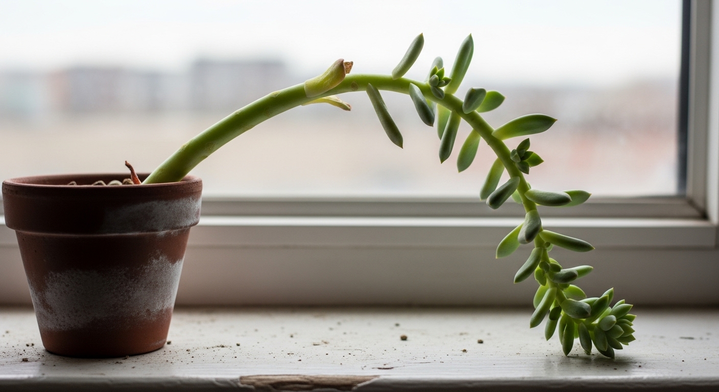 多肉植物を室内で育てていると、誰もが一度は経験するこの現象。これは「徒長(とちょう)」と呼ばれる状態です。